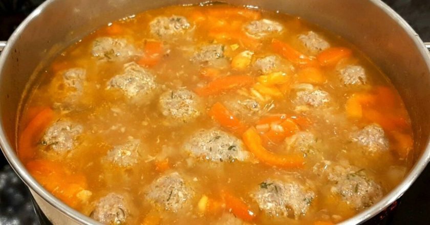 4. Z gotowego mięsa, uformuj małe klopsiki i podsmaż je na rozgrzanej patelni z olejem na złoty kolor z każdej strony. Następnie, przełóż je do garnka z bulionem i gotuj na małym ogniu z marchewką do miękkości.