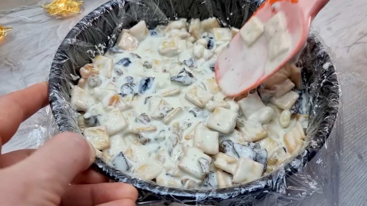 3. Wymieszaj wszystkie składniki i przełóż masę do formy, wyłożonej folią spożywczą.