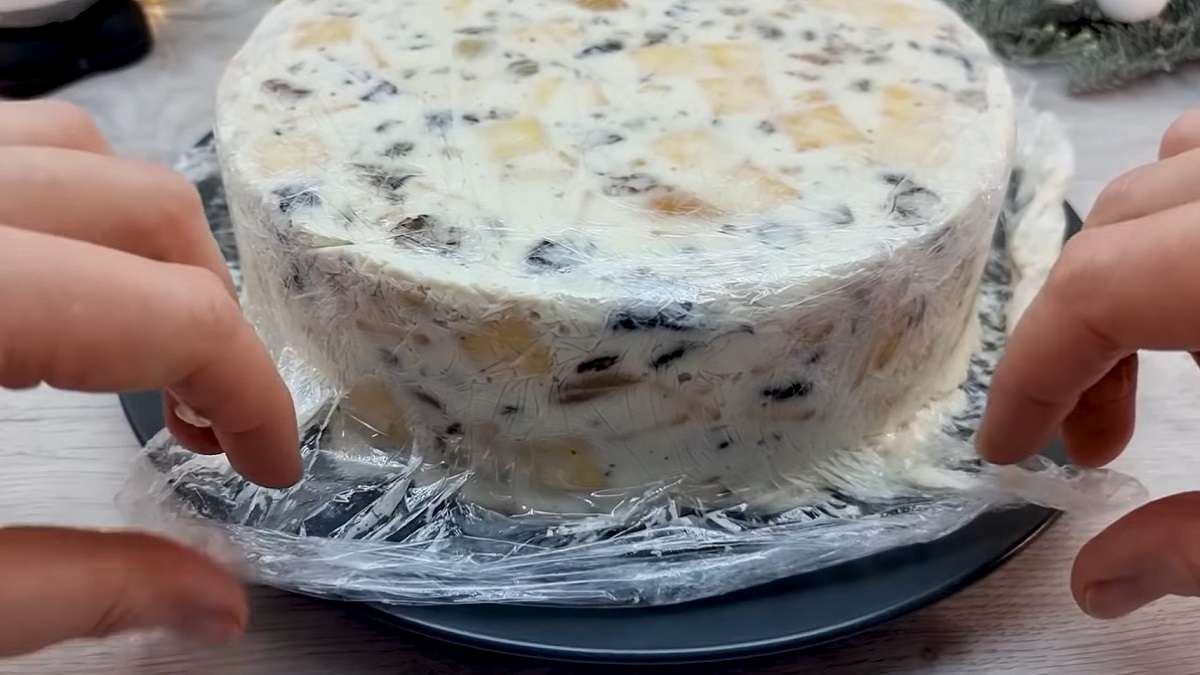 4. Wygładź całą powierzchnię, przykryj folią spożywczą i dociśnij ciężkim przedmiotem.