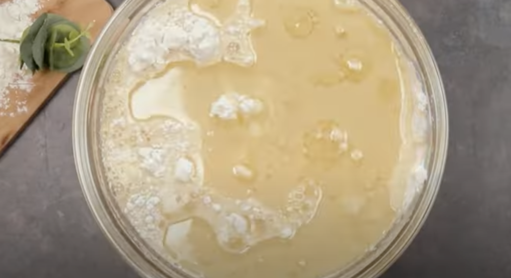 1. Pokruszone drożdże rozpuść w letnim mleku, dodaj cukier i trochę mąki. Dokładnie wymieszaj i odstaw do wyrośnięcia.
