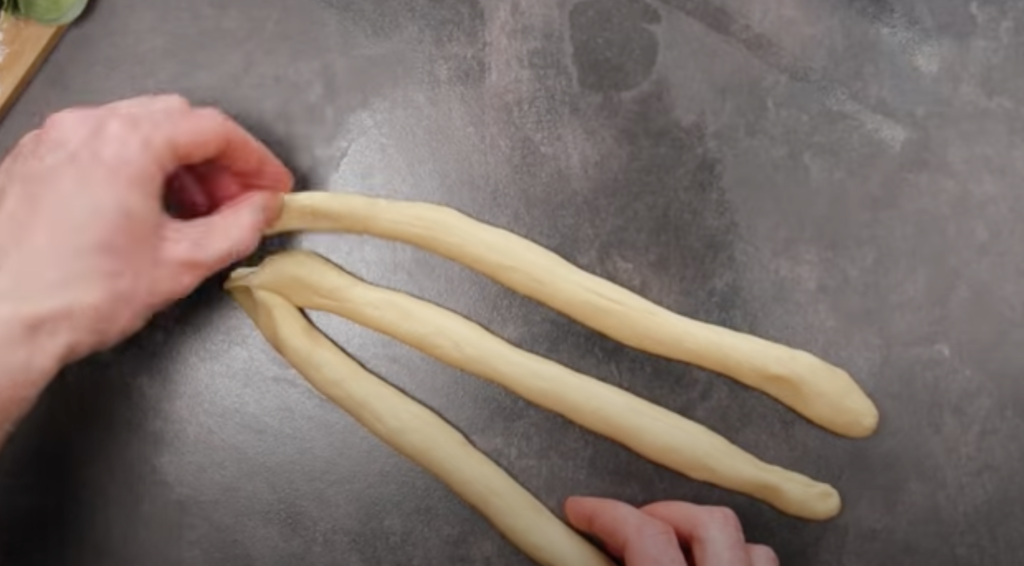 6. Poukładaj warkocze na blaszce, przykrytej papierem do pieczenia, zachowując między nimi odległość.