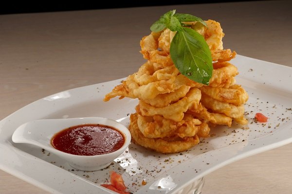 3.Po upływie tego czasu wyjmij cebulę na ręcznik papierowy i dokładnie w ten sposób ją osusz. Tak przygotowaną cebulę zanurzaj w gotowym cieście i smaż na głębokim oleju do momentu, aż ich kolor będzie złoty. Aby usunąć nadmiar tłuszczu, koniecznie połóż je na ręcznik papierowy. Życzę smacznego!