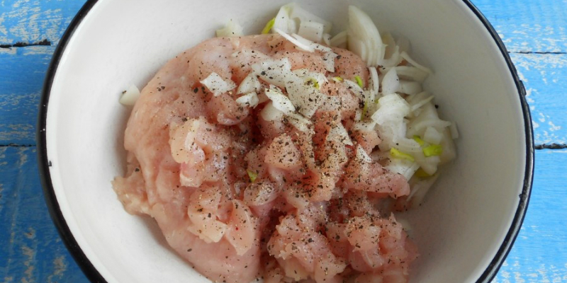 1. Mięso mielone, wymieszaj z drobno pokrojoną cebulą, dodaj 1 jajko i przyprawy.