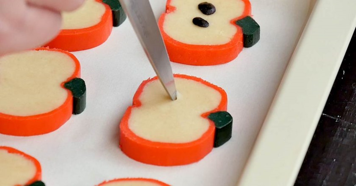 Gdy całkowicie ostygną, podawaj ciasteczka poukładane naprzemiennie z pokrojonym w plastry jabłkiem. Smacznego!