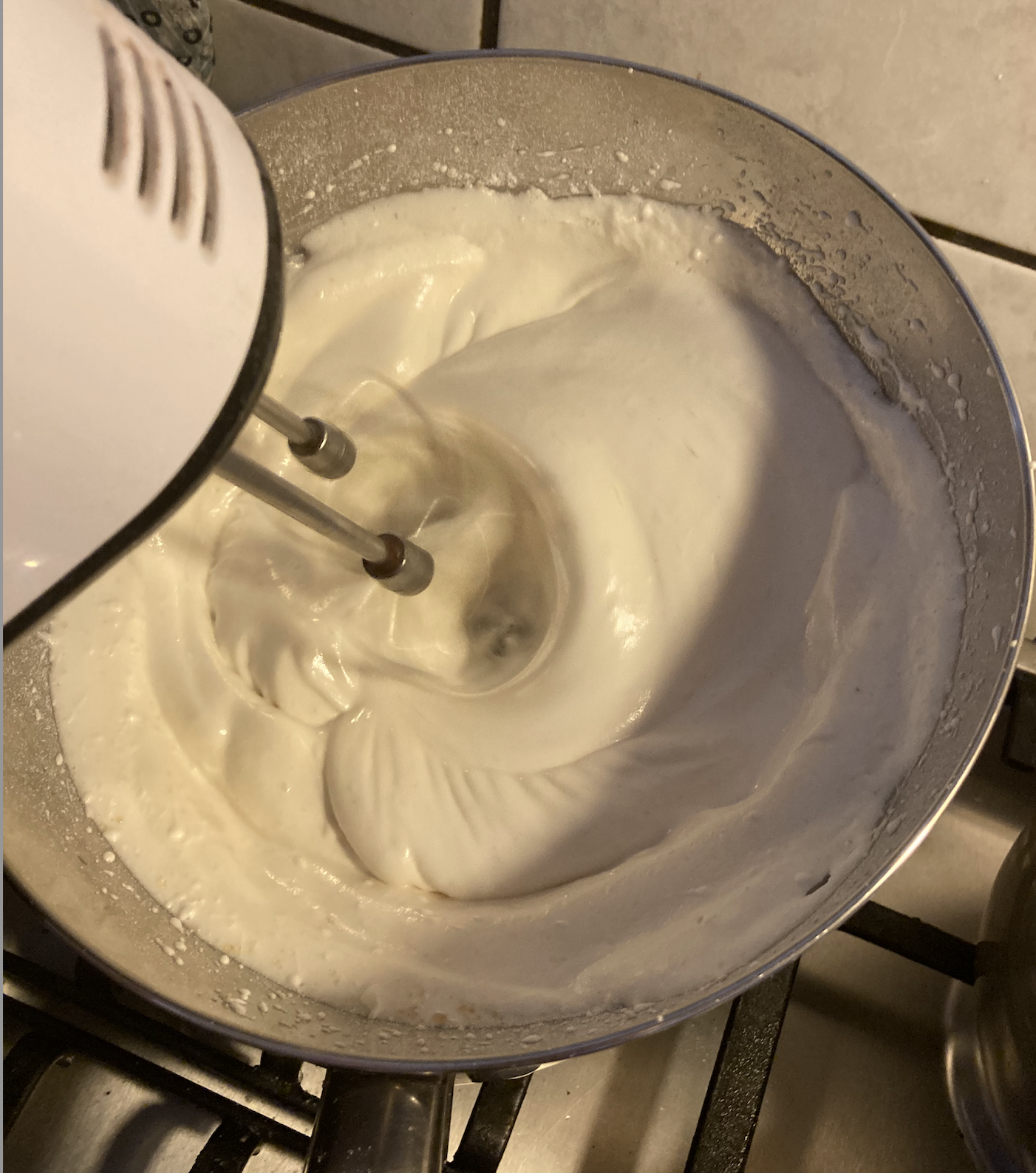 7. Do schłodzonej masy budyniowej, dodaj ubite wcześniej masło i wymieszaj dokładnie mikserem.