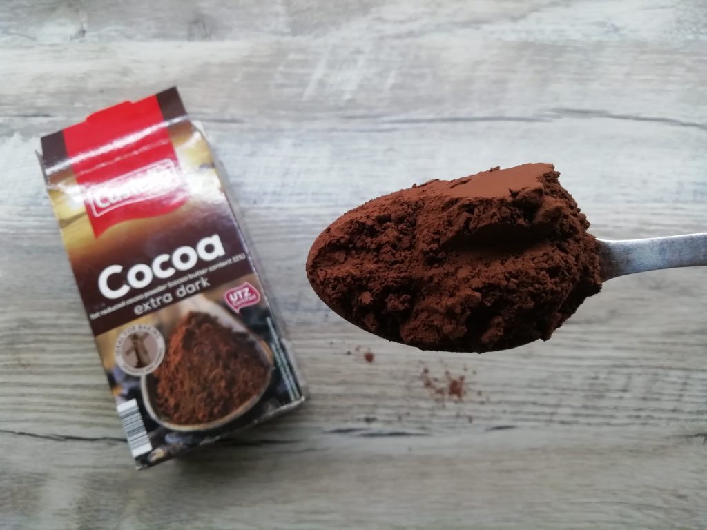 8. Na biszkopt, wyłóż krem budyniowy i wygładź. Na warstwie kremu, wyłóż ubitą wcześniej na sztywno śmietankę i oprósz kakao. Gotowe!