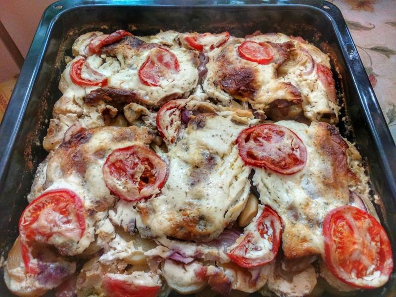 7. Na kilka minut przed końcem pieczenia zdejmij folię, zalej przygotowanym sosem i zapiekaj jeszcze przez kilka minut. Gotowe!