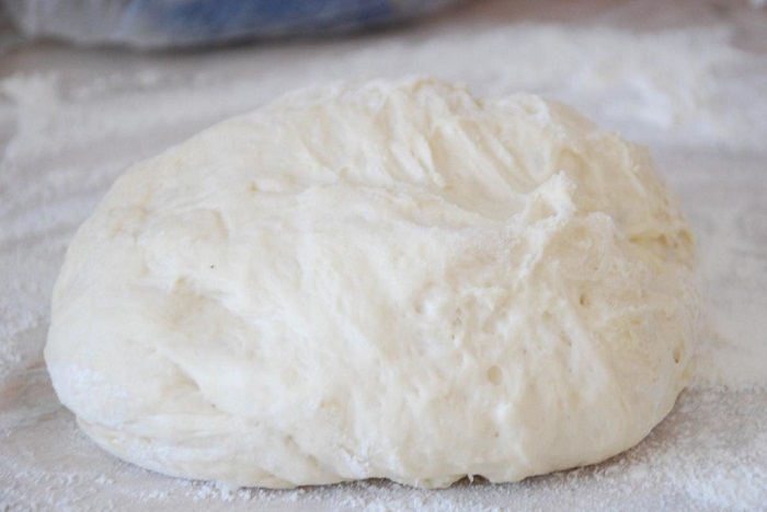1. W dużej misce, wymieszaj przesianą mąkę z wodą, olejem, cukrem, solą, drożdżami i zagnieć gładkie, elastyczne ciasto.