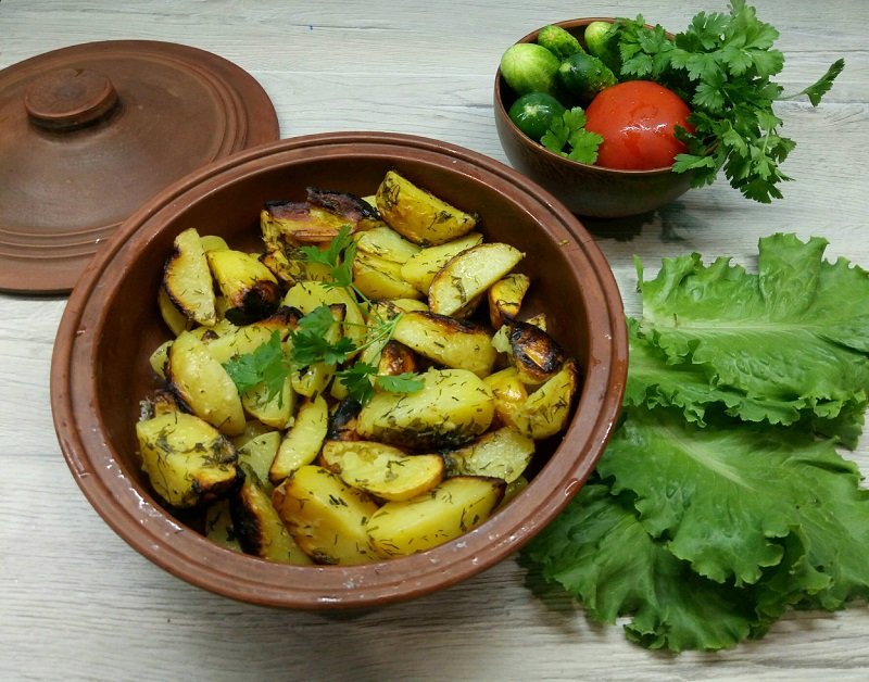 1. Małe ziemniaki obierz ze skórki, umyj i pokrój w ósemki. W misce, wymieszaj oliwę z solą, przyprawami, przeciśniętym przez praskę czosnkiem i posiekaną natką pietruszki. Przygotowaną mieszanką, polej ziemniaki i dokładnie wymieszaj.