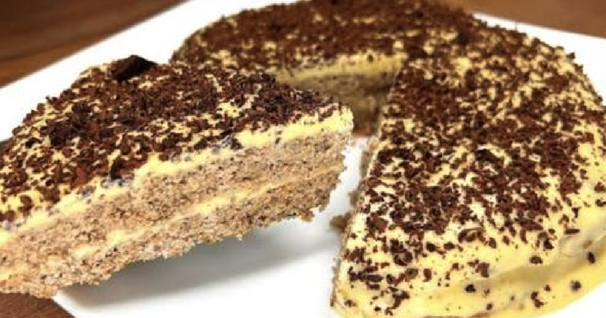 5. Wystudzone ciasto, przekrój na pół i przełóż przygotowanym wcześniej kremem. Gotowe!