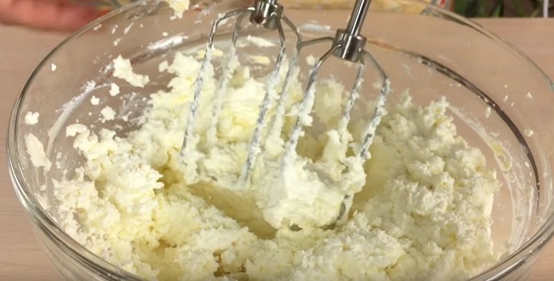 1. Twaróg przełóż do miski, rozgnieć widelcem, dodaj wanilie i cukier (według uznania). Zmiel wszystko blenderem na gładką, jednolitą masę. Następnie, dodaj do masy zmielone herbatniki i orzechy. Całość dokładnie wymieszaj.