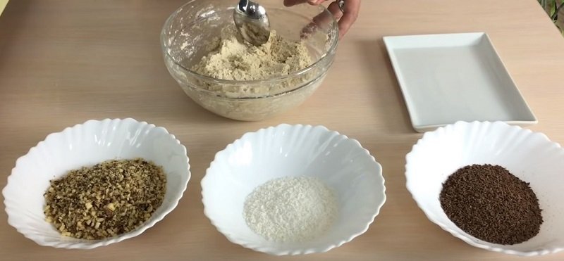 2. Z gotowej masy twarogowej, uformuj kulki wielkości orzecha włoskiego. Kulki obtocz w ulubionych dodatkach, np.: w wiórkach kokosowych, posypce czekoladowej lub w posiekanych orzechach.