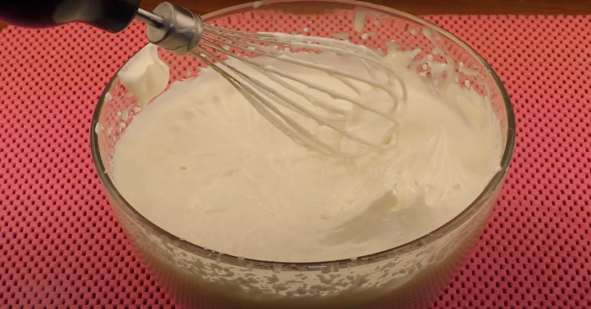 2. W schłodzonej misce, ubij schłodzoną śmietankę z cukrem pudrem i wanilią trzepaczką, do czasu aż uzyskasz puszystą pianę (przez co najmniej 5 minut).
