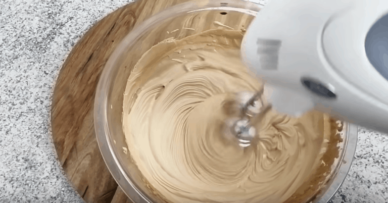 1. W wygodnej misce, wymieszaj wodę z cukrem pudrem i kawą rozpuszczalną. Na wysokich obrotach miksera, ubijaj masę do czasu, aż zgęstnieje (ok. 2 minuty).
