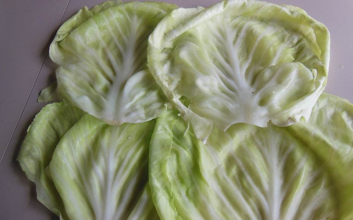1. Kapustę zaparz we wrzącej wodzie, a następnie odetnij jej grube części.
