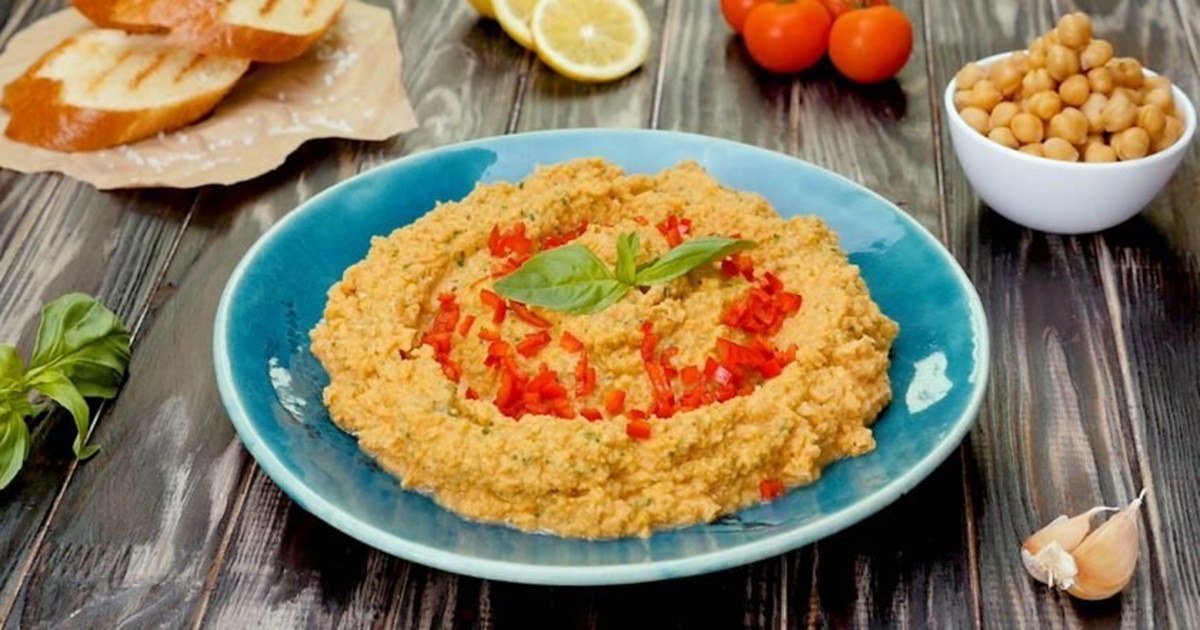 Hummus z pomidorami i bazylią – Prosta i ekspresowa w przygotowaniu przekąska na każdą okazję