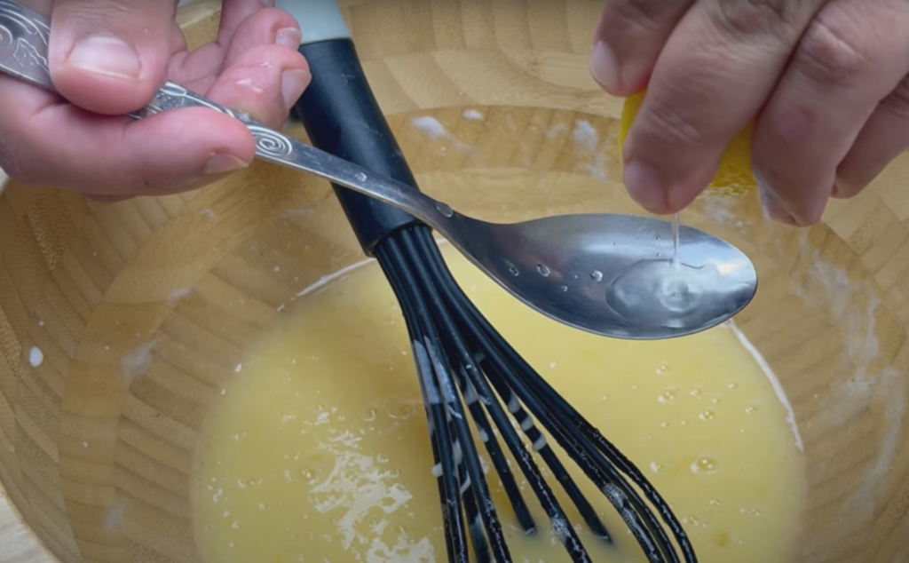 1. W wygodnej misce, ubij trzepaczką jajka z cukrem i cukrem waniliowym.