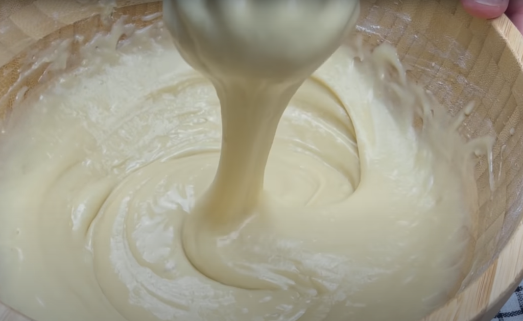 3. Na koniec, dodaj przesianą mąkę z proszkiem do pieczenia, sól i wymieszaj – ciasto powinno być jednolite i gładkie.