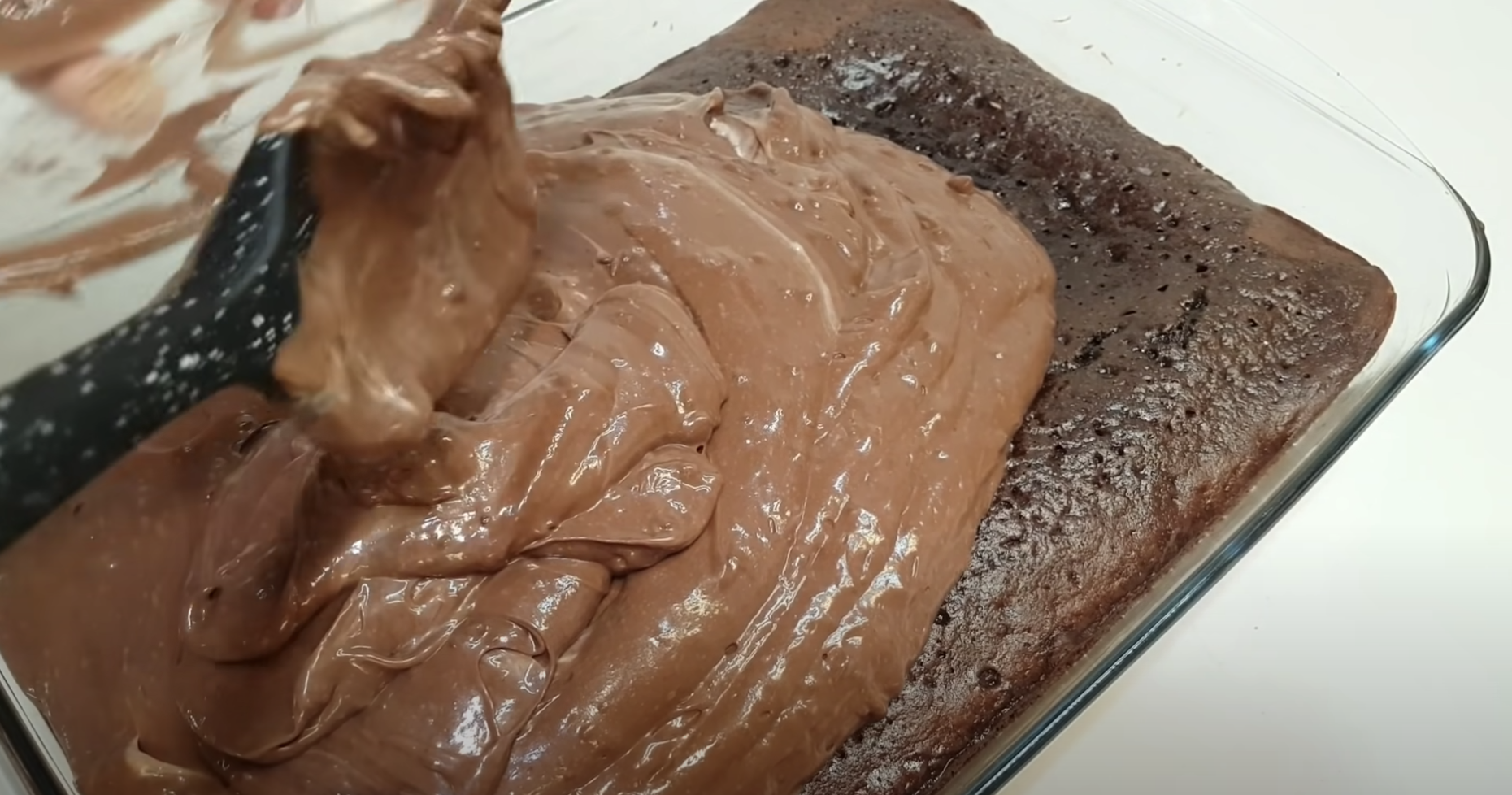 Ciasto, wysmaruj na całej powierzchni masą czekoladową i udekoruj według uznania. Smacznego!