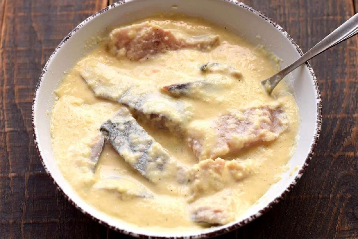 4.Pokrojone kawałki ryby włóż do ciasta ,po czym przechowuj w lodówce około 30 minut.