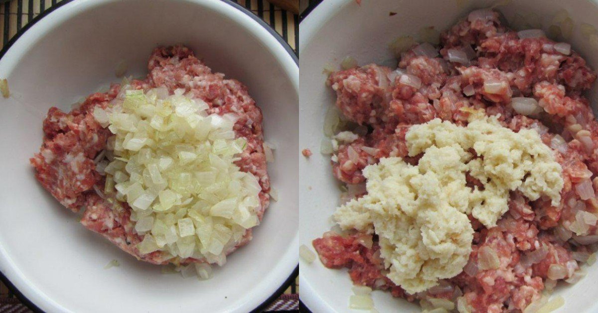 1. Obraną cebulę, pokrój w drobną kosteczkę i zeszklij na rozgrzanej patelni z olejem. Następnie delikatnie ją przestudź i wymieszaj z mielonym mięsem wołowym.