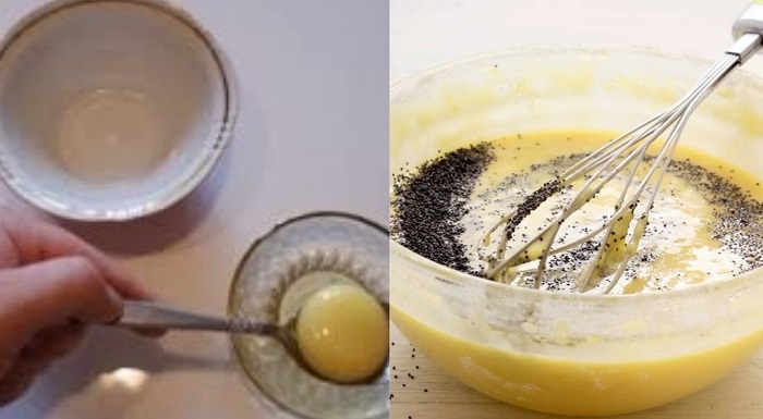 Dodaj cukier i ubijaj, aż całkowicie się rozpuści. Dodaj do mieszanki mak, wiórki kokosowe, aromat waniliowy, mąkę zmieszaną z proszkiem do pieczenia i ciepłe mleko. Wymieszaj ciasto ruchami od dołu do góry.
