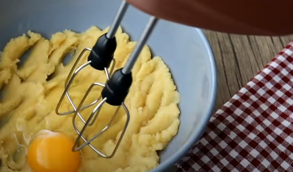 2. Dodaj wodę, sól, pieprz i doprowadź do wrzenia na małym ogniu. Następnie, dodaj mąkę i dokładnie wymieszaj. Gdy masa wystygnie, dodaj jajka i ubij mikserem na jednolitą masę.