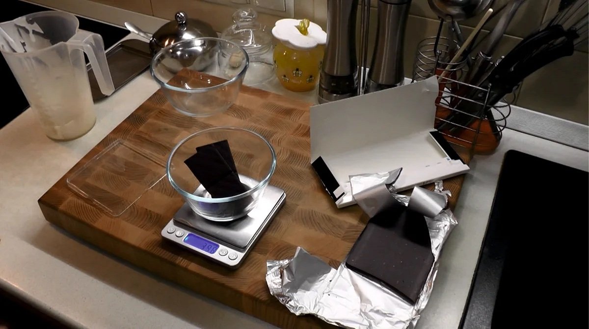 2.Następnie dodaj pokruszoną na mniejsze kawałki gorzką czekoladę. Na małym ogniu cały czas podgrzewaj do momentu , aż czekolada się rozpuści. Pamiętaj aby nie gotować mieszanki!