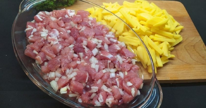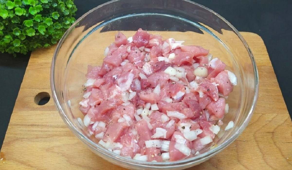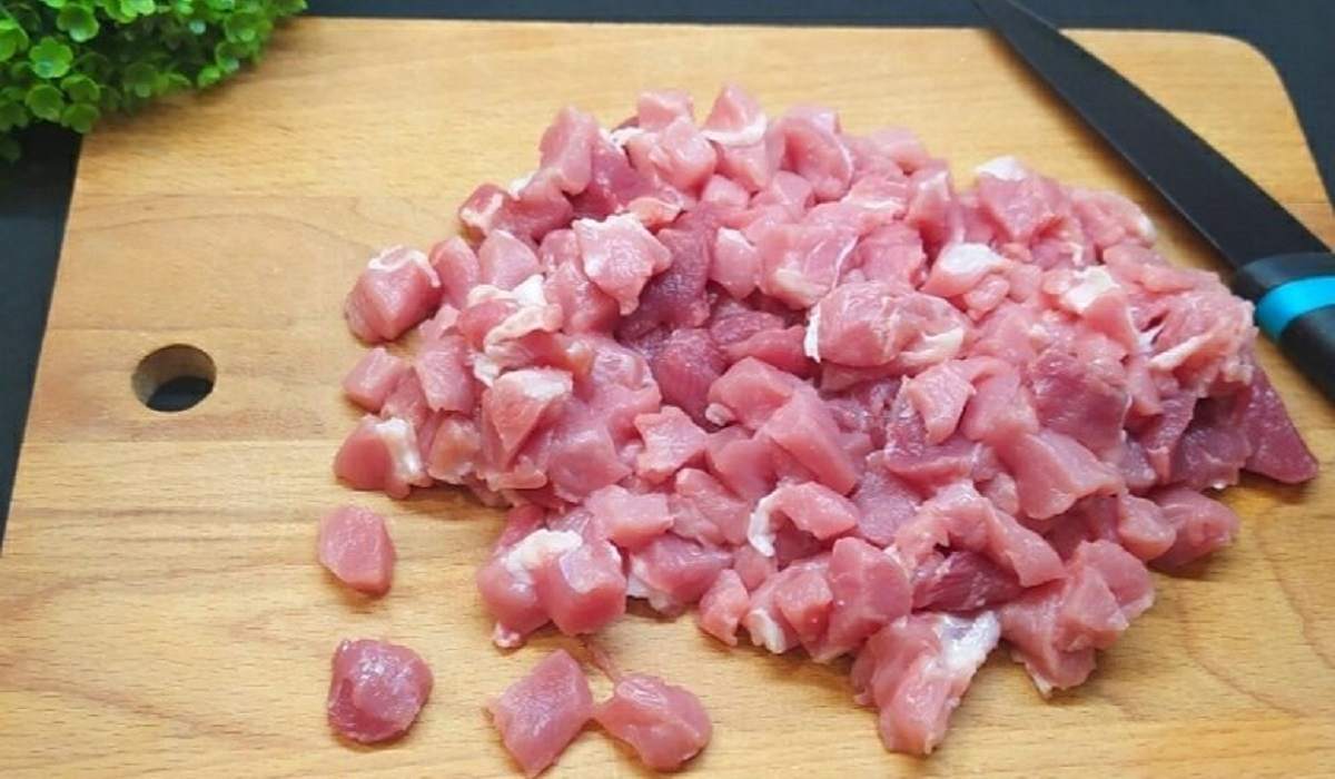 1. Mięso umyj, oczyść i pokrój w kosteczkę.