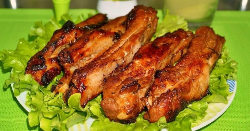 1. Żeberka umyj, osusz i pokrój na mniejsze kawałki (lub pozostaw w całości). Natrzyj mięso solą, pieprzem, przyprawami i ziołami.