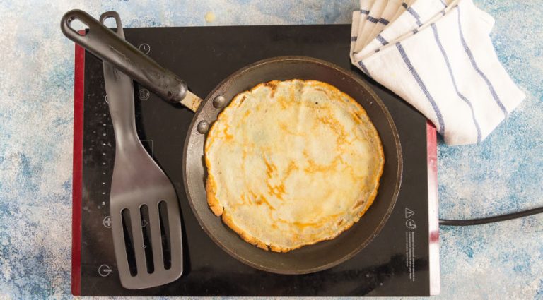 - Rozgrzej patelnię na średnim ogniu, dodając odrobinę oleju, masła lub smalcu, aby zapobiec przywieraniu ciasta.
