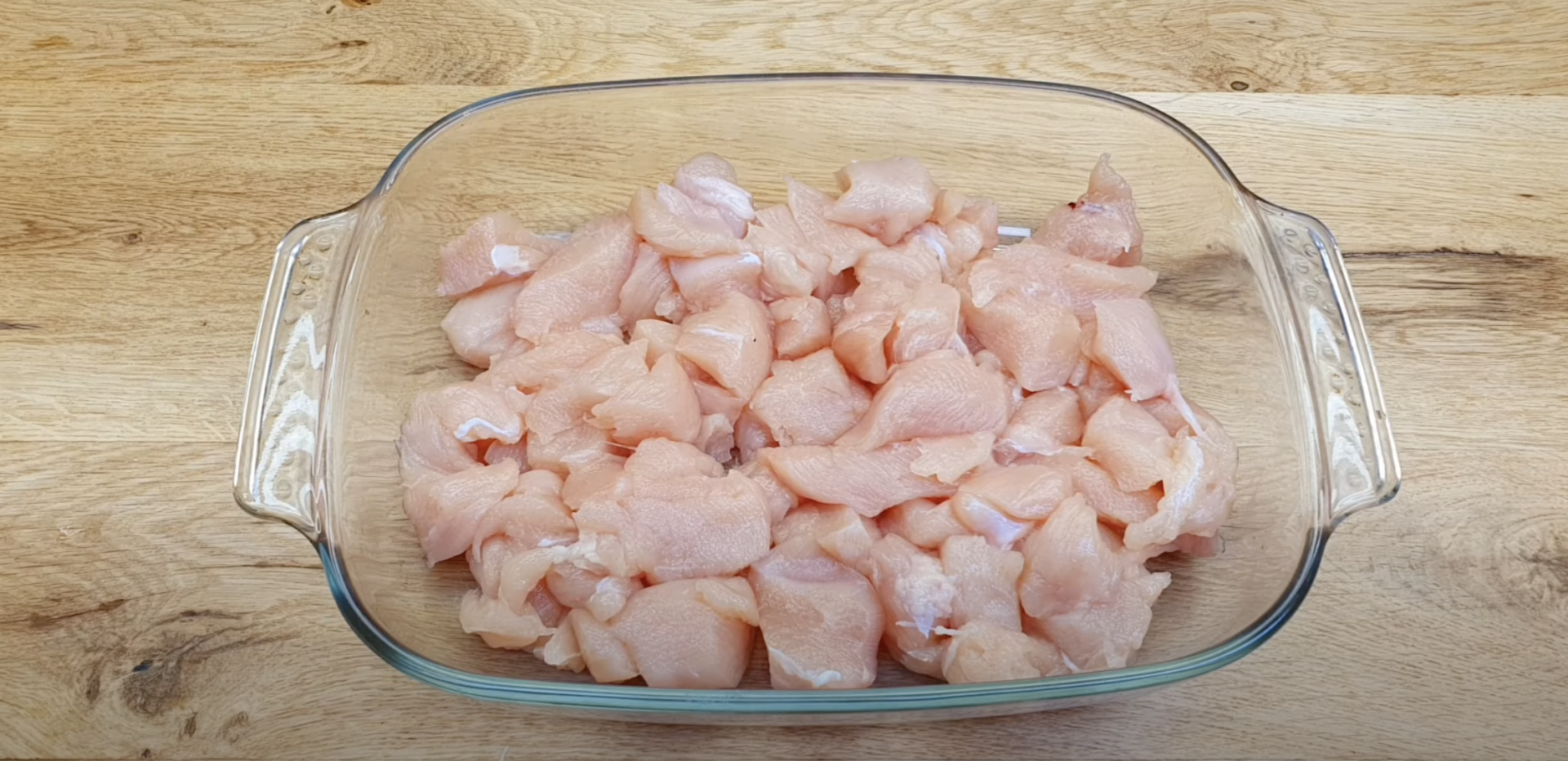 1. Na samym początku dokładnie umyj, po czym osusz mięso. Następnie ostrym nożem pokrój na mniejsze kawałki i przypraw szczyptą soli, całość bardzo dokładnie wymieszaj.