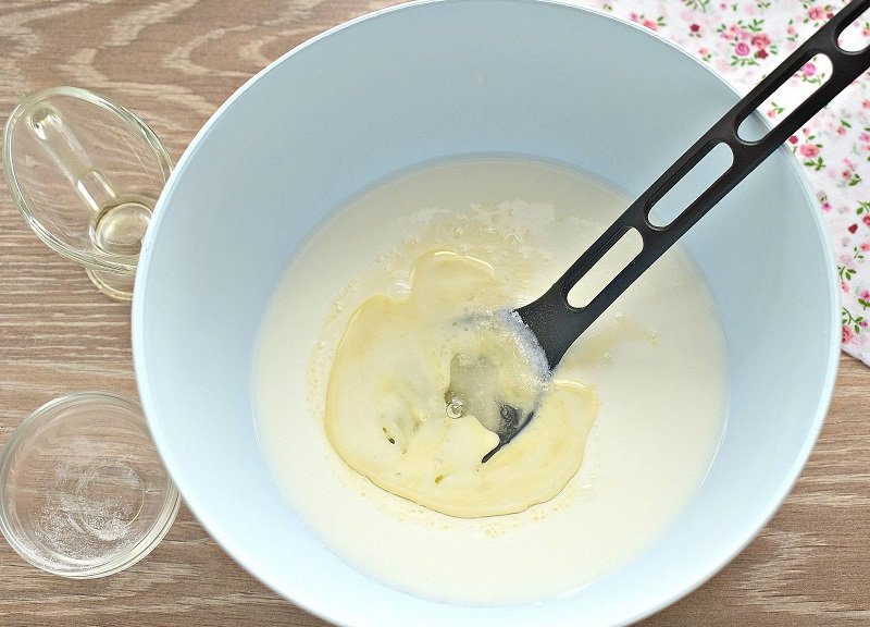 1. Kefir w temperaturze pokojowej, wymieszaj z ciepłą wodą.