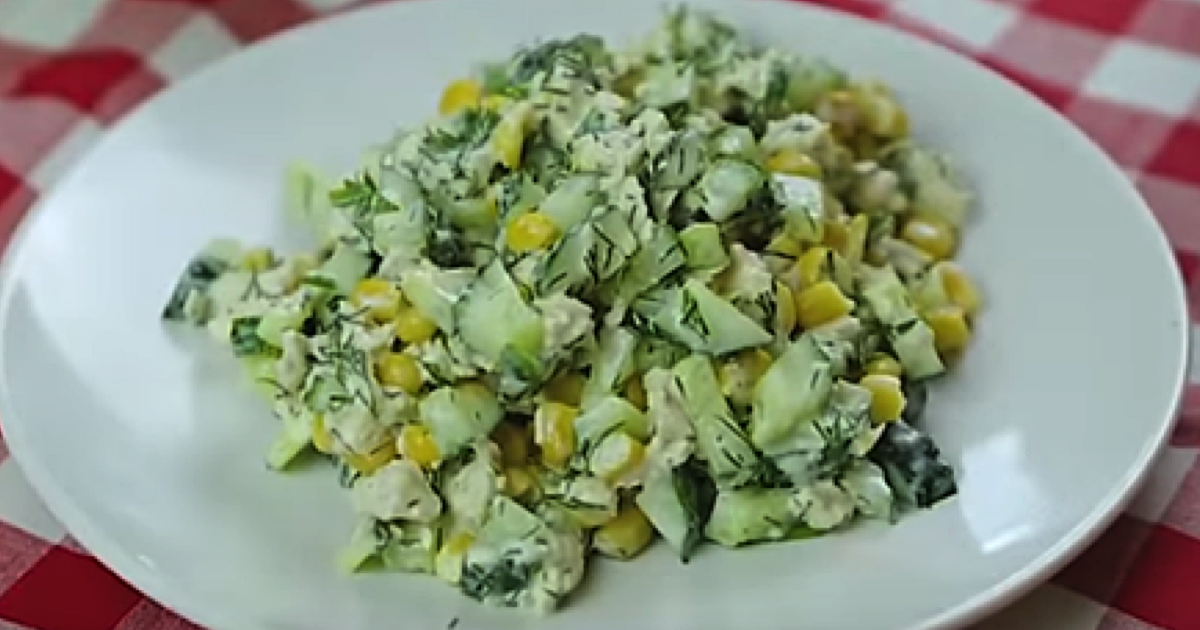 2. W między czasie drobno posiekaj koperek, następnie na mała kosteczkę pokrój ogórka a kukurydze odcedź na sitku.