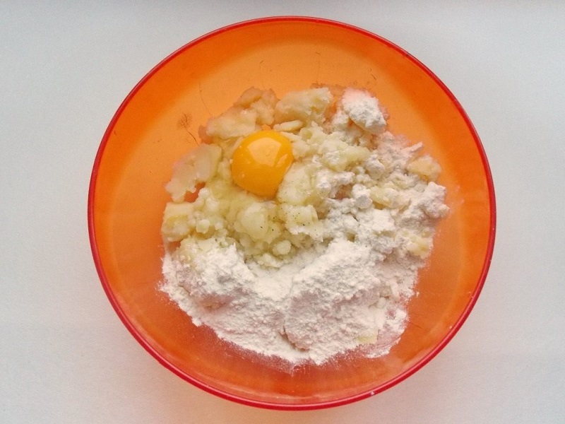 5. Gdy puree jest już chłodniejsze dodaj do niego jajko oraz mąkę, po czym dokładnie zagnieć masę.