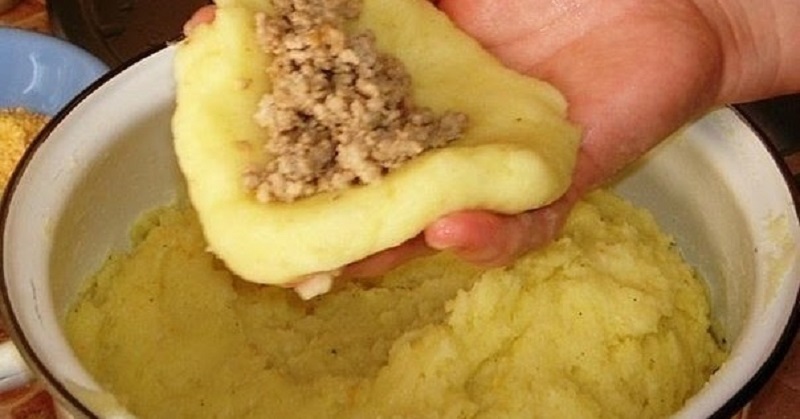 6. Rękoma zrób kulki, po czym lekko je rozpłaszczaj. Następnie nakładaj przygotowany farsz. Każde z nich dokładnie sklej, a by powstały małe kotleciki.