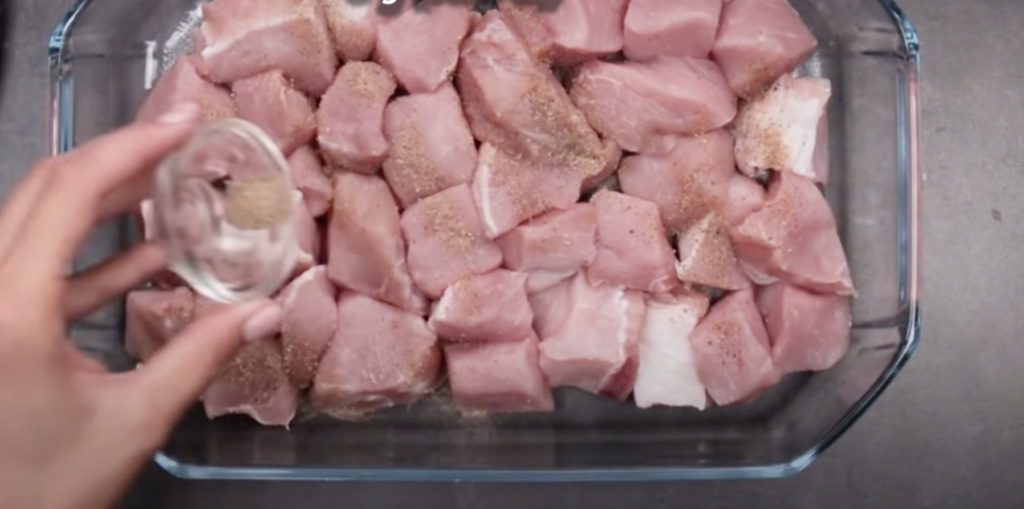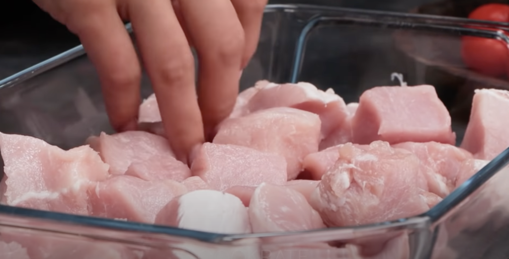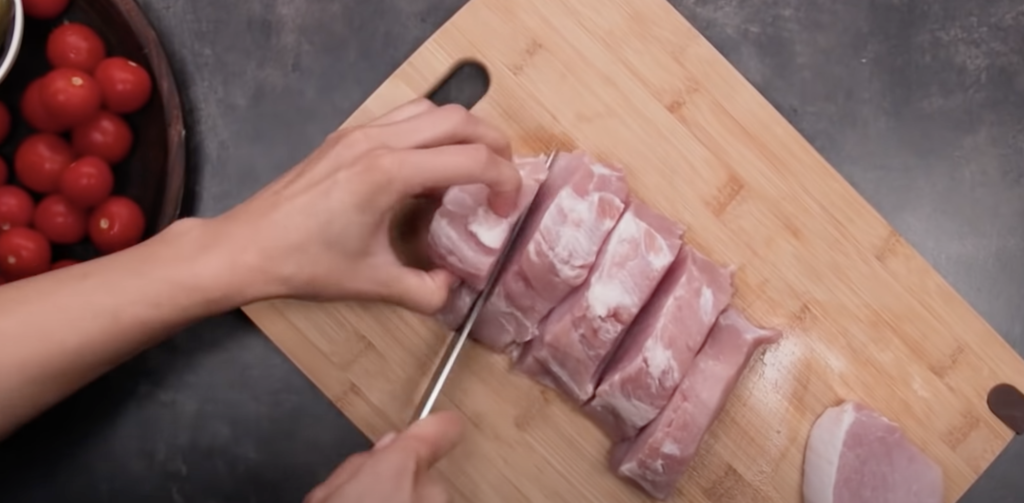 1.Na większe kawałki pokrój umyte oraz osuszone mięso.