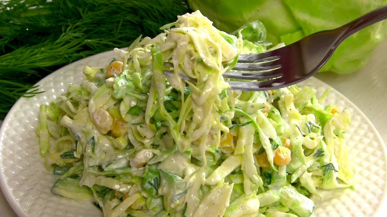 Sałatka z białej kapusty z dodatkiem kukurydzy oraz jabłka.