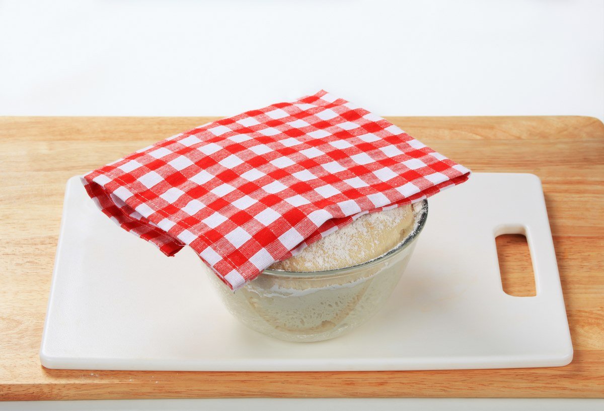 Zacznij wyrabiać ciasto najpierw drewnianą łyżką, a następnie rękami. Ciasto powinno być bardzo miękkie i lepkie. Następnie przełożyć ciasto do miski, przykryć folią spożywczą lub ręcznikiem kuchennym i odstawić na 1 godzinę. W tym czasie powinien wzrosnąć 1,5–2 razy. Następnie rozciągnij, ponownie przykryj folią i odstaw na 1 godzinę.