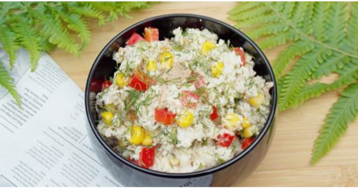 3. W wygodnej misce, wymieszaj kaszę kuskus z papryką, kukurydzą i tuńczykiem wraz z olejem.