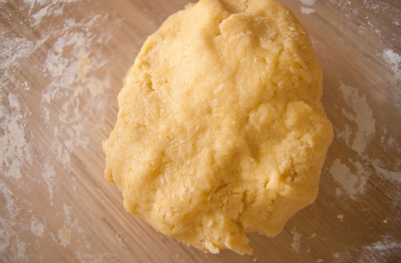 4. Gotowe ciasto, podziel na kilka mniejszych części i każdą rozwałkuj na grubość do 0,5 cm.