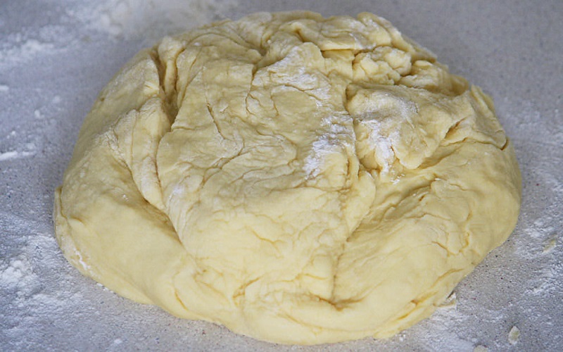 2. Teraz, dodaj przesianą mąkę z proszkiem do pieczenia i zagnieć gładkie, jednolite ciasto.