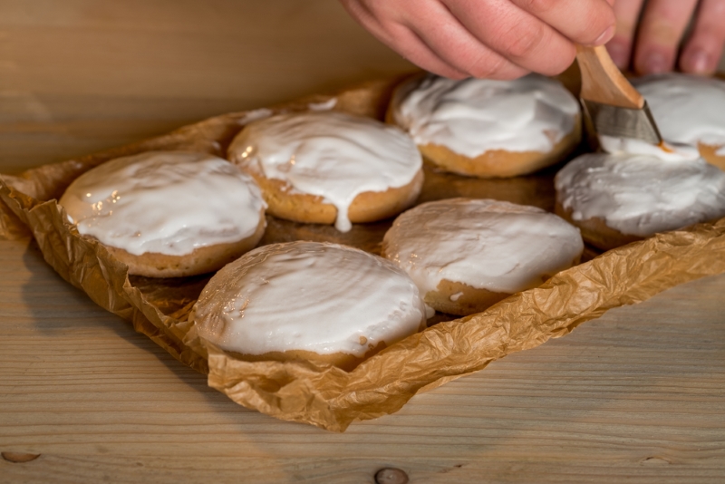 5.W między czasie zacznij przygotowywać lukier. W miseczce wymieszaj białko z cukier pudrem, mieszaj do momentu, aż powstanie gładka konsystencja.