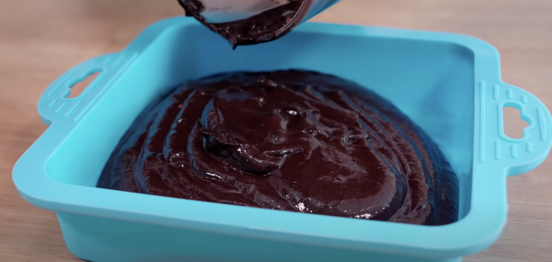 2. Gotowe ciasto, przełóż do formy o wymiarach 16 × 16 cm., wyłożonej papierem do pieczenia.