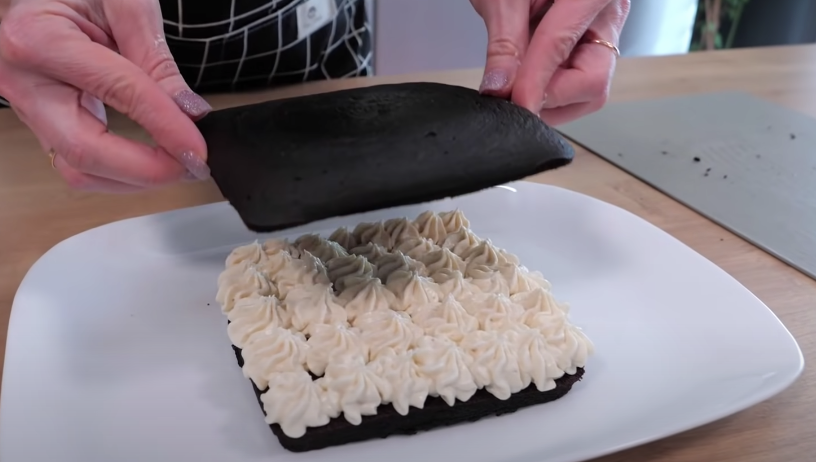 5. Wystudzone ciasto, przekrój na pół i przełóż przygotowanym nadzieniem. Gotowe!