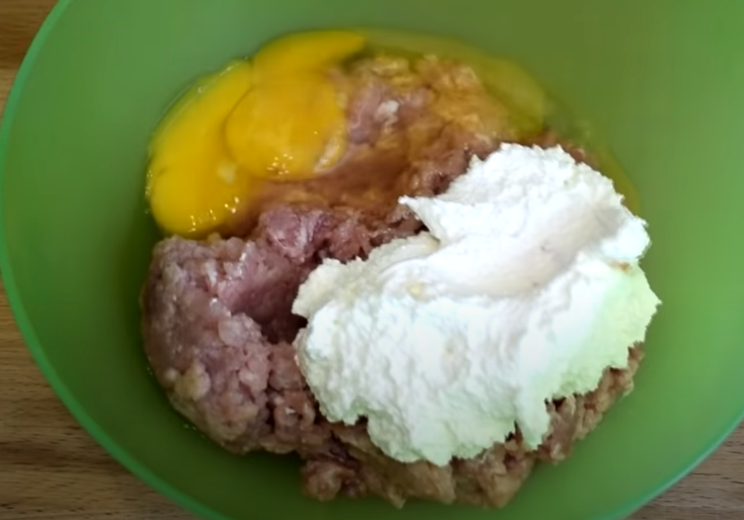 W misce należy rozmieszać twaróg za pomocą miksera. Gdy twaróg będzie rozmieszany należy dodać mięso, jajka, sól i pieprz, a następnie wszystko dokładnie wymieszać. Następnie w blenderze należy zblendować czosnek i cebulę. W kolejnej misce należy należy połączyć bułkę tartą z wodą.