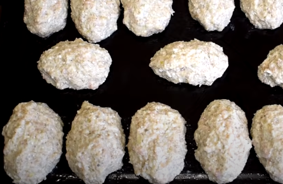 Tak przygotowane mieszaniny należy dodać do mięsa mielonego, a następnie za pomocą łyżki trzeba formować kotlety. Uformowane kotlety trzeba ułożyć na posmarowanej wcześniej olejem blaszce i piec w nagrzanym do 180 stopni piekarniku przez około 30-35 minut.