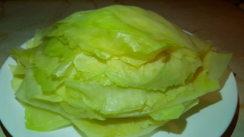 1. Zacznij od przygotowania kapusty. Zaparz liście w garnku z wodą lub podgrzewaj w kuchence mikrofalowej na małej mocy przez 10 minut. Potem oddziel liście i odetnij grube części.