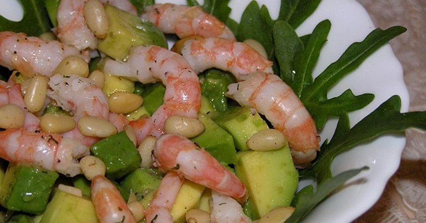 4. W wygodnej misce, wymieszaj krewetki z awokado i polej przygotowanym dressingiem, a wierzch posyp startym na tarce o drobnych oczkach parmezanem. Gotowe!